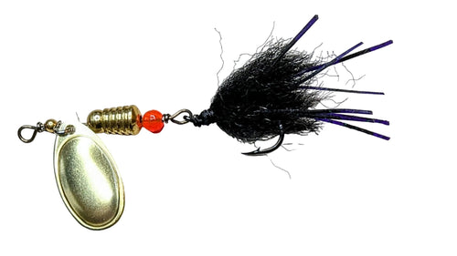 Most mass produced spinners rely on natural materials tied to treble hooks. These skirts offer limited movement and lack hook up potential when two of the three shanks are cut back to create a single hook lure.